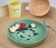 Indeholder 1 kop, 1 tallerken, 1 skål og 1 ske.